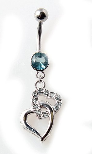 14g Surgical Steel with Sterling Silver Light Blue Double Hearts Belly Ring- Piece Reviews