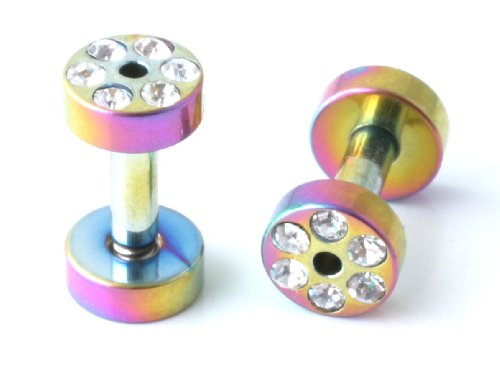 316L Surgical Steel Screw-on Flesh Tunnel Ear Plug with Rainbow with Stones - 4g (5mm) Reviews