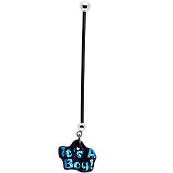 Flexible Pregnancy Belly Button Ring. Body Jewelry made with a pregnant women in mind. Keep your piercing intact with this flexible pregnancy PTFE belly ring. The adjustable length pregnancy barbell will allow you adjust the piercing to your size. Flexible Self Threading 14 Gauge (1.6mm) PTFE Shaft, 2" Length, Handmade Dichroic Glass Charm, 316L Surgical Grade Stainless Steel Balls. Handmade Dichroic It's A Boy Pregnant Belly Ring