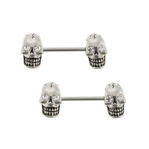 Stainless Steel Nipple Barbell with Skulls and Clear CZ - Sold as a Pair Reviews